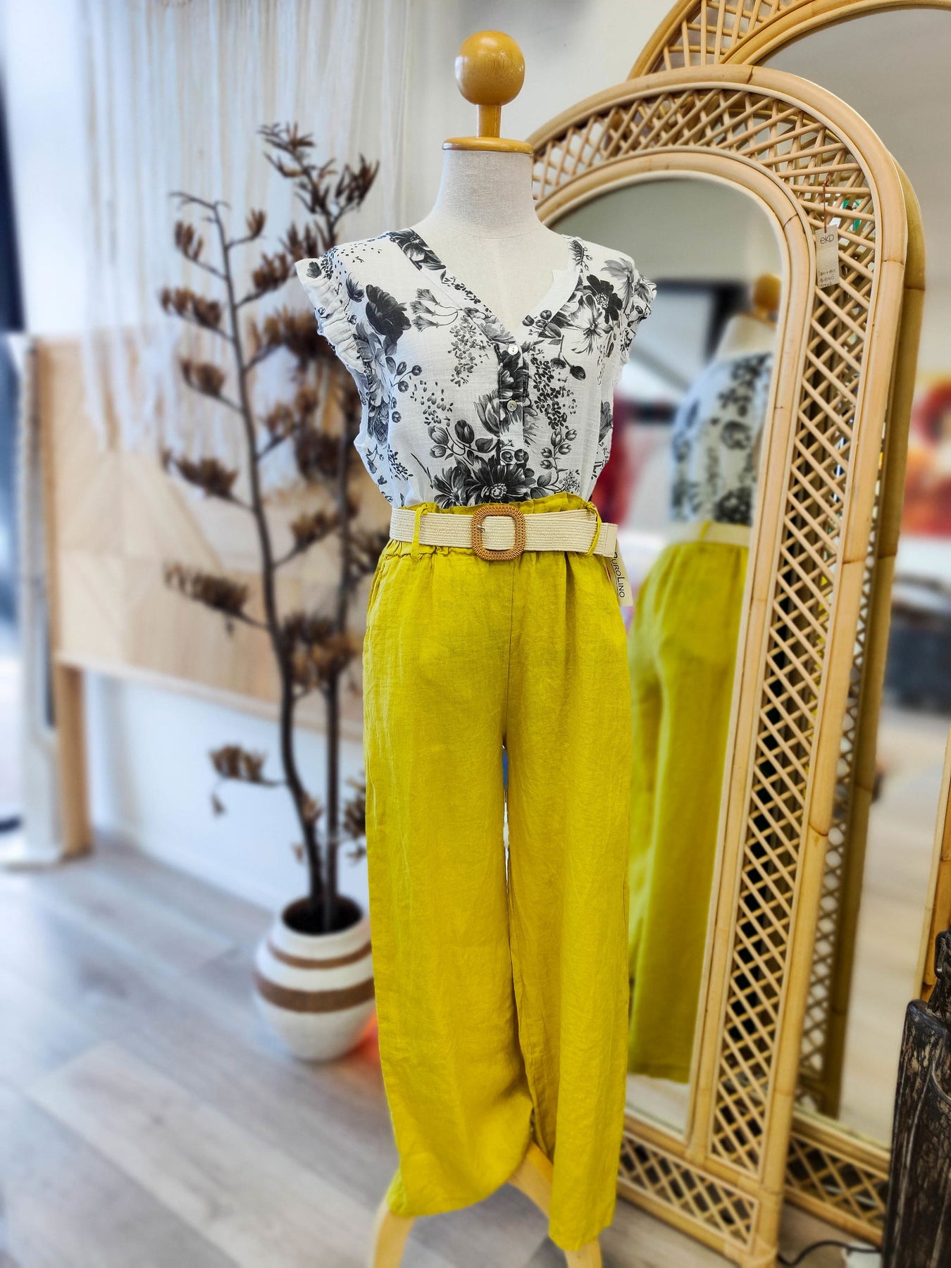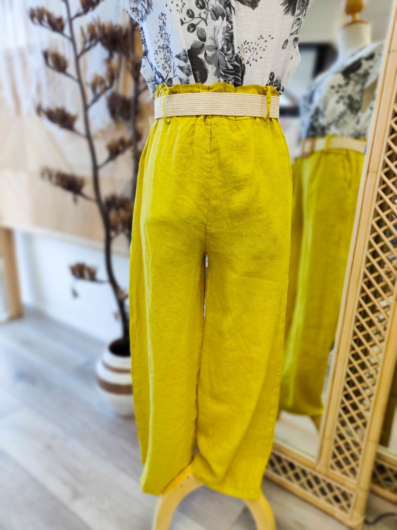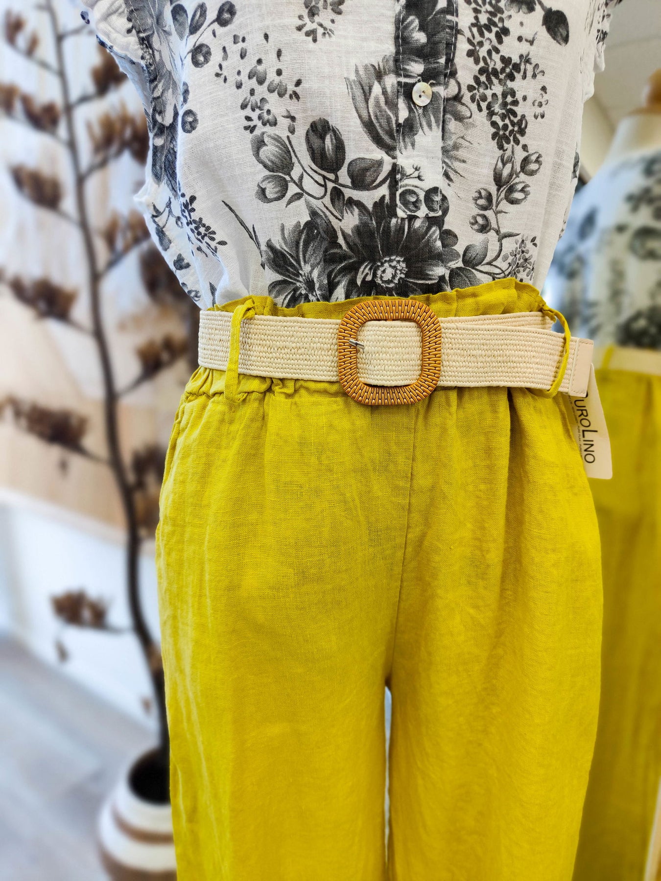 Similar to the Simona Pantalone, The buckle pants have a smocked elasticated waist band which can be worn with or without the gorgeous beige belt. The long loose fit legs are perfect for staying cool yet classy in the warmer months.
