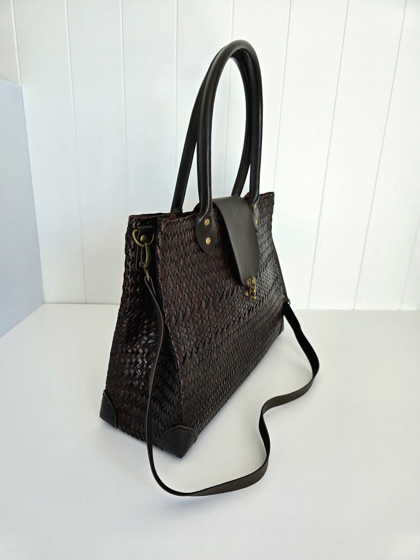 Handwoven Grass with Faux Leather Detailing