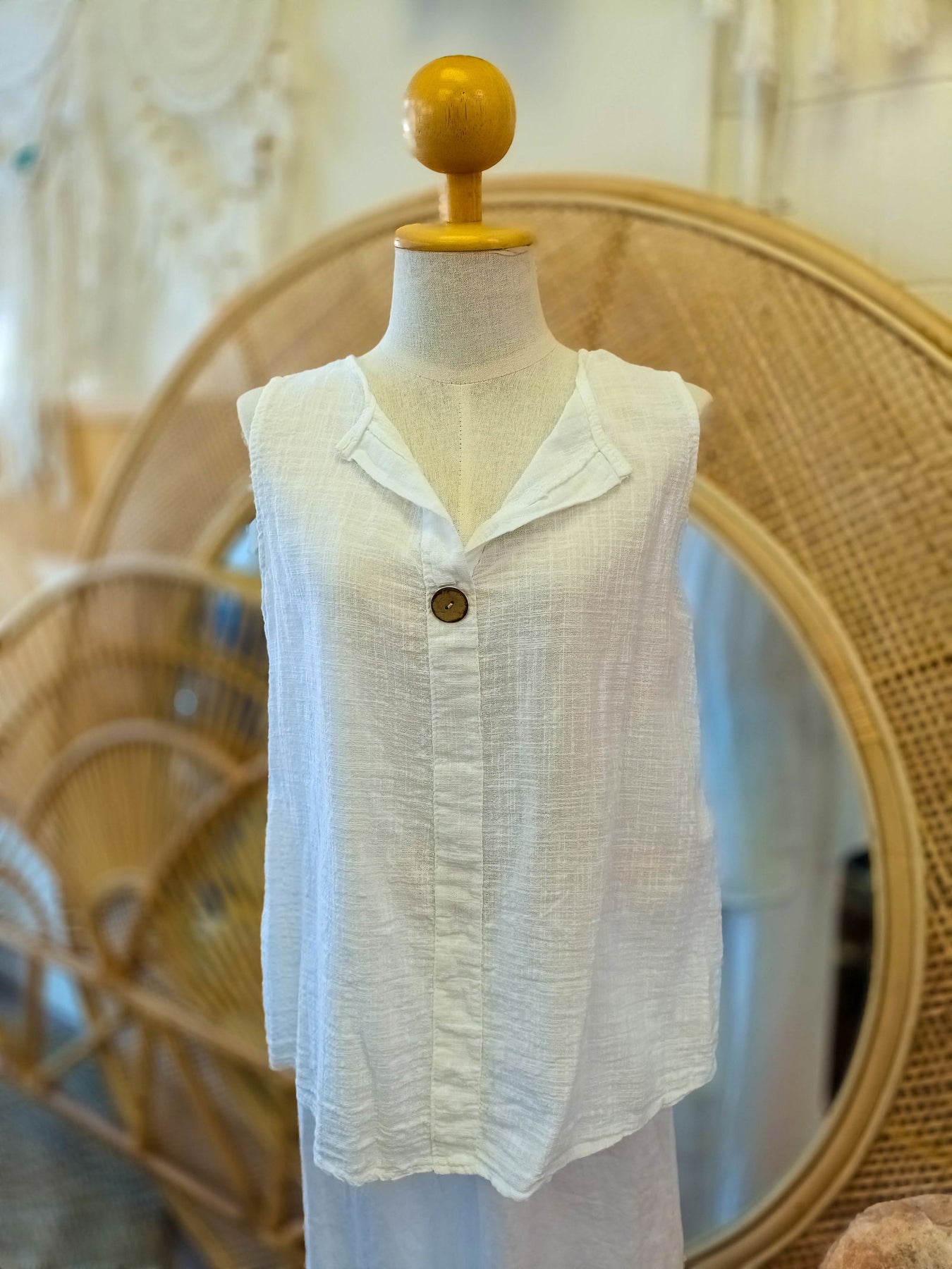 Get ready to have some fun in style with our Cotton Button Singles! This relaxed singlet features a playful v neck and a single, eye-catching button. You'll feel comfortable and chic in this gorgeous Cotton. Perfect for any occasion, feel free to relax in this versatile singlet.