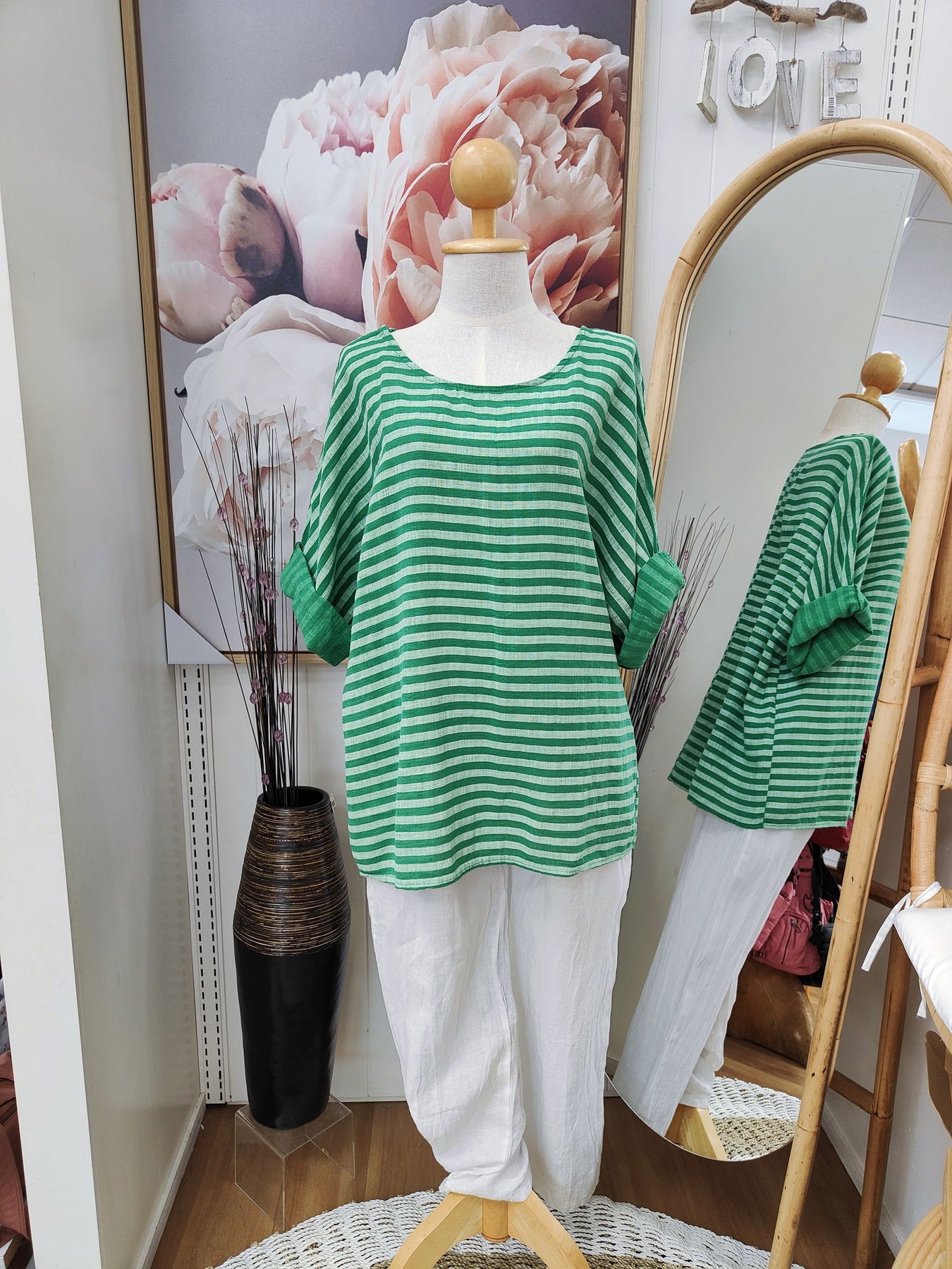 A Striped Liz time is a staple for us! You guys love her so we have brought her back in 5 stunning colours . Easy and free flowing this top is perfect for that causal summer look, roll the sleeves up or keep them down for extra sun protection.