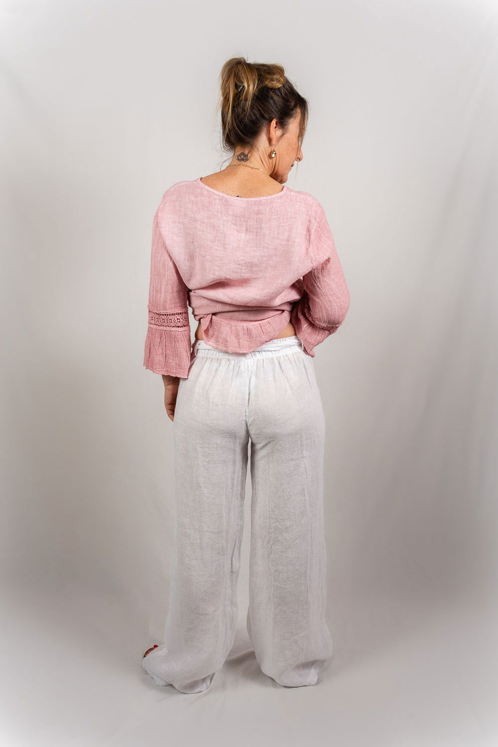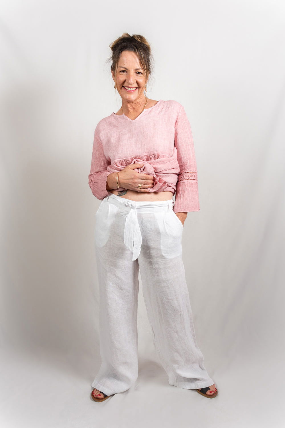 The Zoe Pants are a classic pair of pants. They have a tie in the front and an elasticated back allowing them to fit a number of different body shapes.